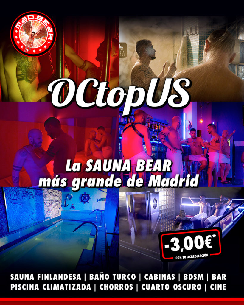 SAUNA OCTOPUS se encuentra en pleno centro de Madrid, junto a Chueca y los famosos locales de ambiente BEAR que han hecho popular a Madrid.